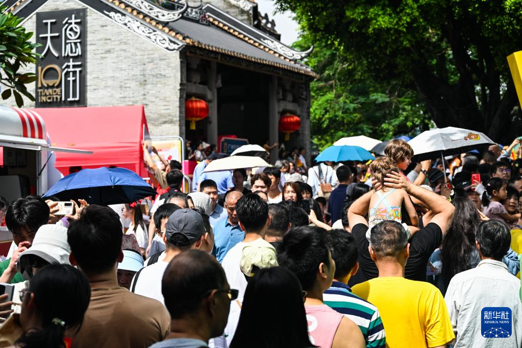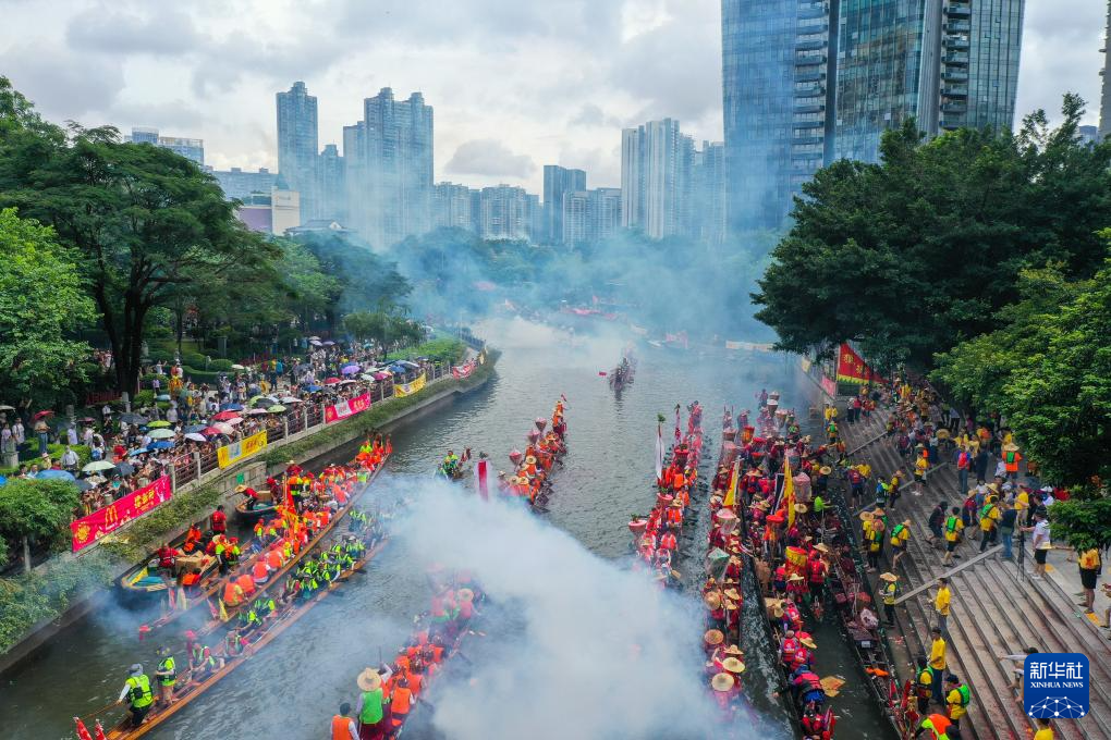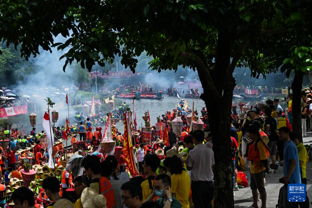 6月10日,國內外游客匯聚在獵德觀賞“龍船景”?!褒埓啊笔菑V府地區水鄉在端午期間舉辦的一種民俗活動。