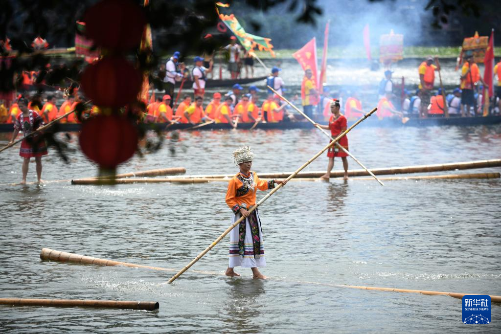 6月10日,第十四屆“荔枝灣·新西關”民俗文化活動之“五月五·龍船鼓”在廣州荔灣湖公園舉行。這是活動中的非遺項目獨竹漂表演。