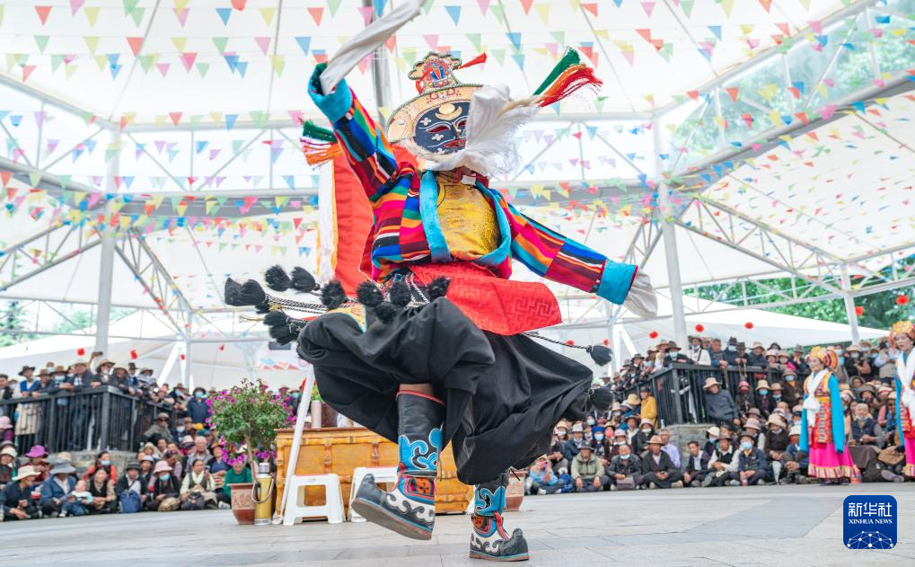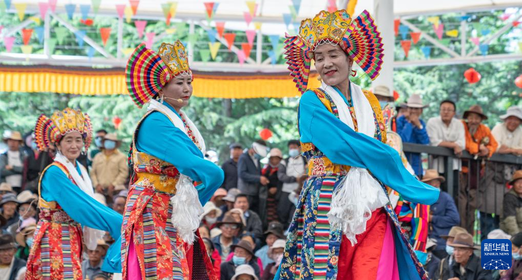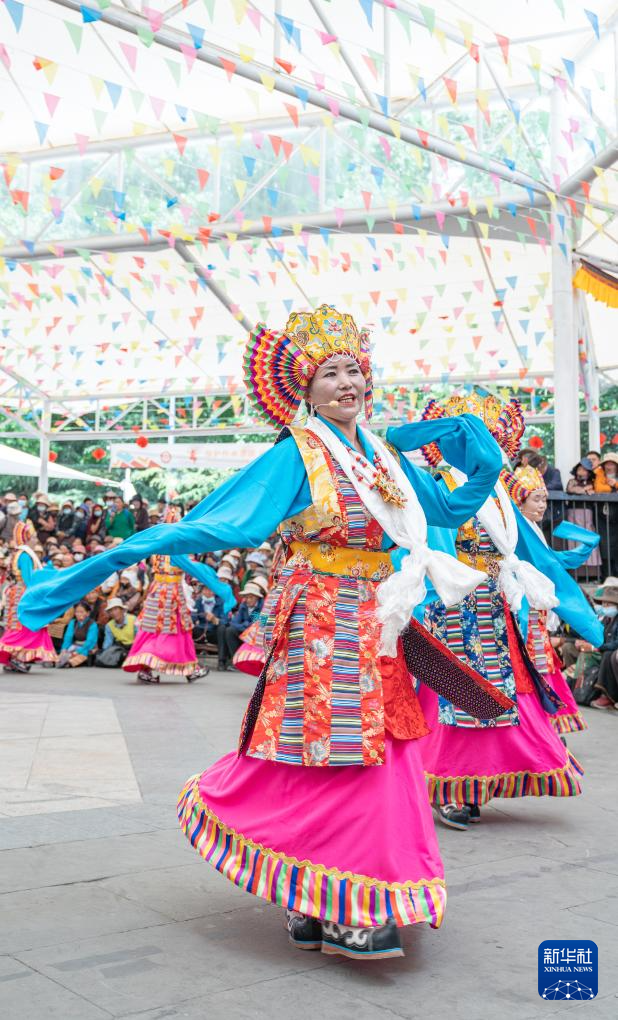 6月11日,藏戲藝人在拉薩市宗角祿康公園表演。