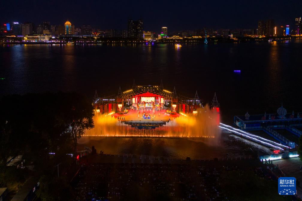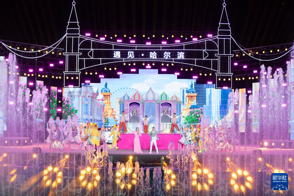 6月10日,大型實景演出《遇見·哈爾濱》在黑龍江省哈爾濱市太陽島風景區上演?!队鲆姟す枮I》的江上大舞臺依松花江而建,演出融合情景劇、歌舞、雜技、水上表演等表現形式,結合水幕、火秀、打鐵花、激光等舞臺特效,打造絢麗的視覺盛宴。