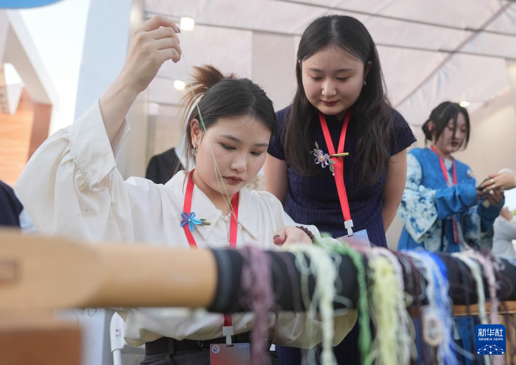 6月12日,武漢紡織大學學生在展示漢繡工藝。