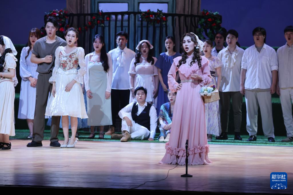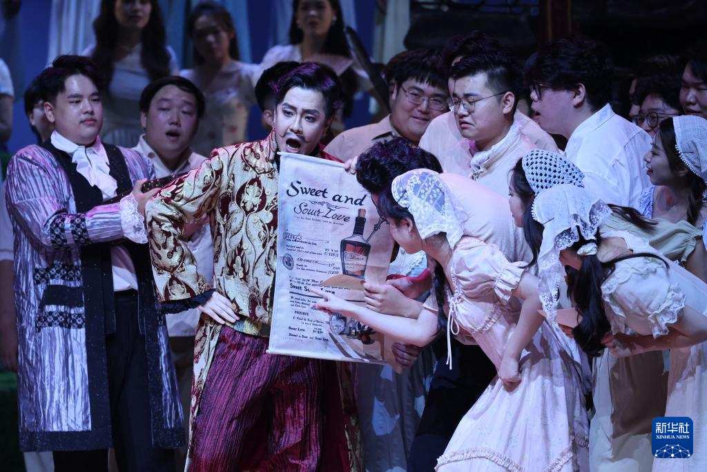 6月12日,演員在表演歌劇《愛之甘醇》。