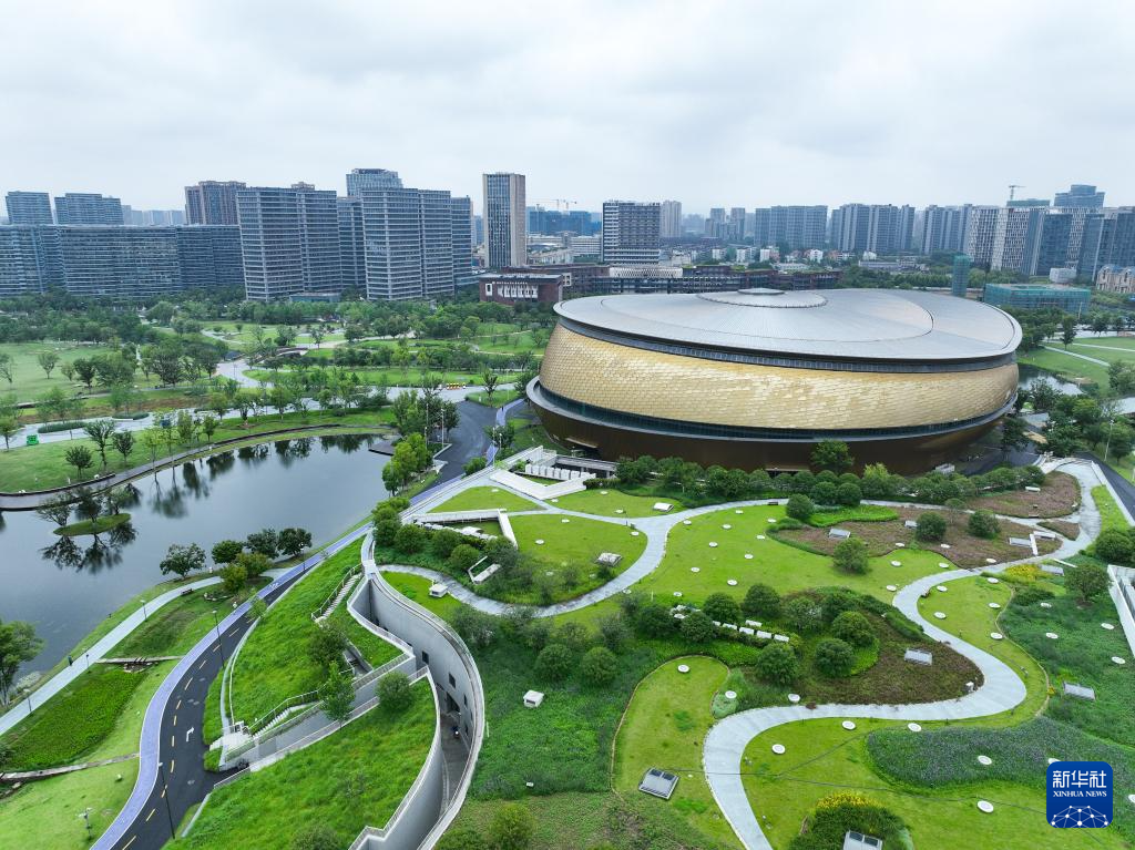鳥瞰拱墅運河體育公園(無人機照片,6月12日攝)。