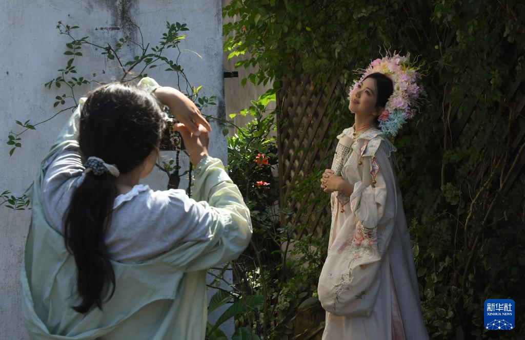 6月12日,在杭州橋西歷史文化街區,游客拍攝街邊的陳設。