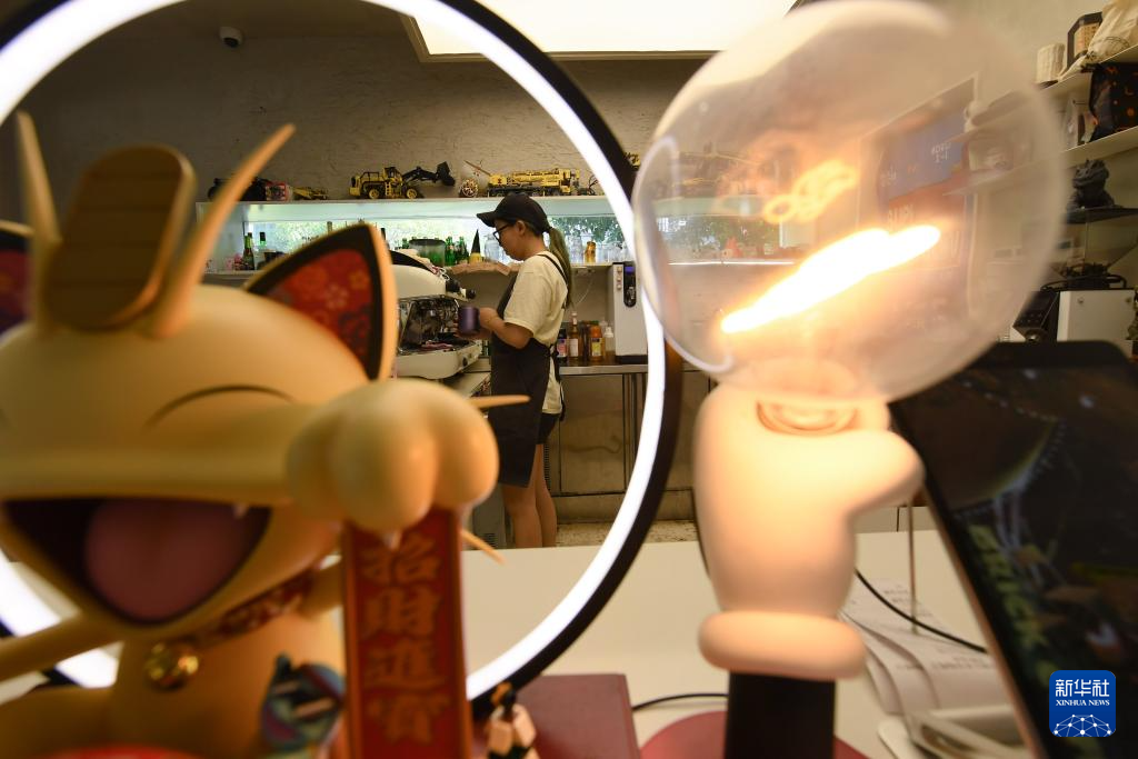 6月12日,人們走進杭州橋西歷史文化街區一家潮玩主題的咖啡館。