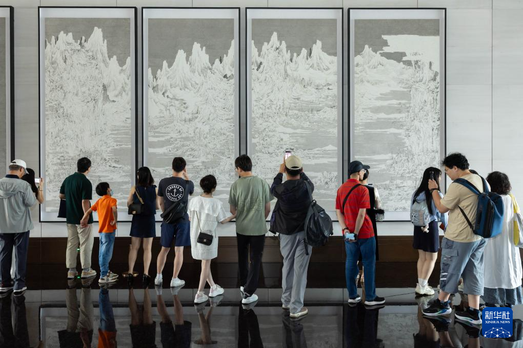 6月16日,市民在上海世界會客廳內欣賞藝術作品。