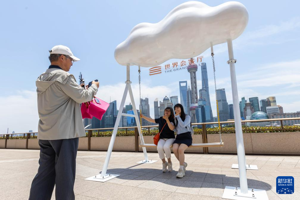 6月16日,市民在上海世界會客廳拍照留影。