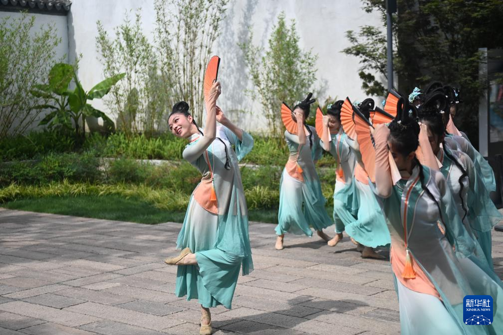 6月16日,北京舞蹈學院學生在資華筠舞蹈藝術館外表演舞蹈《醉春風》。