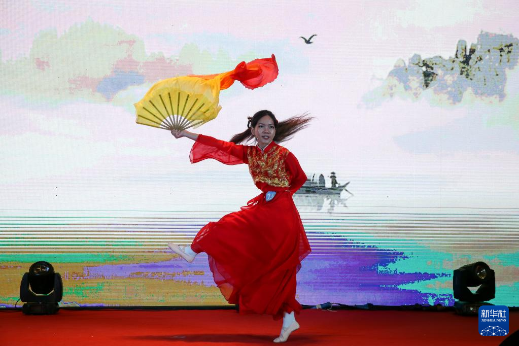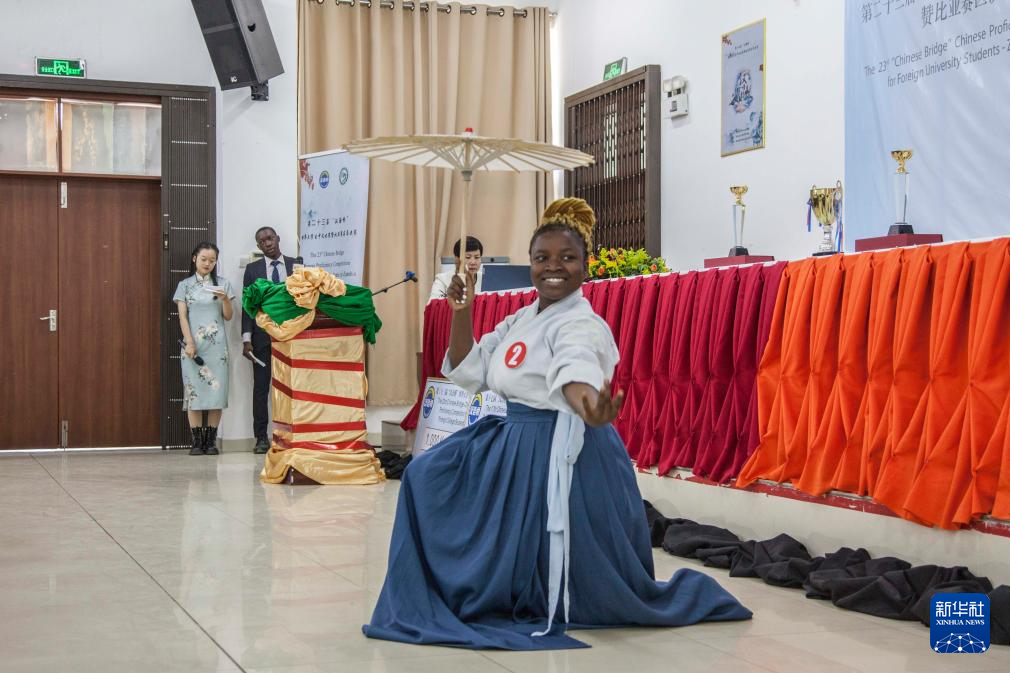 6月7日,一名學生在贊比亞盧薩卡舉行的“漢語橋”世界大學生中文比賽和世界中學生中文比賽中表演舞蹈。