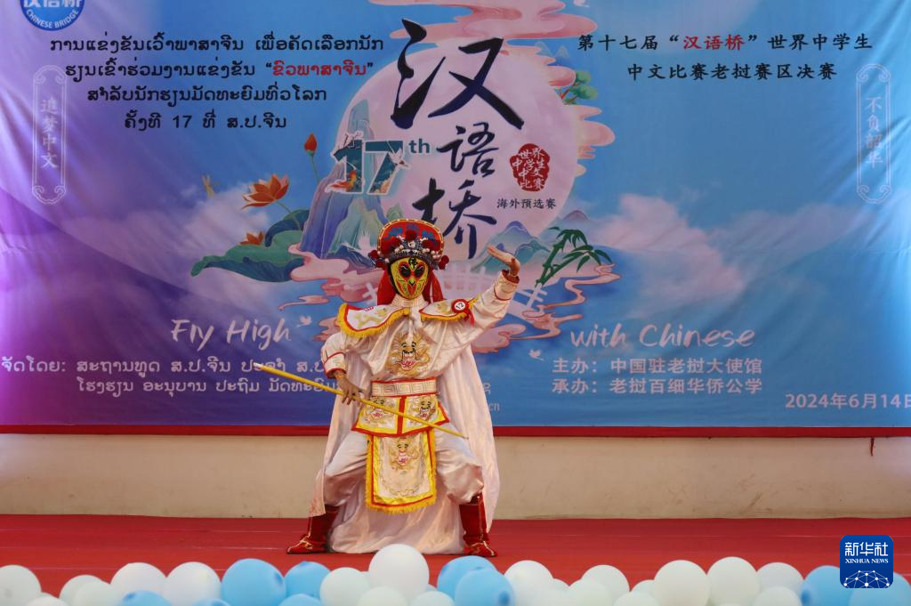 6月14日,在老撾占巴塞省巴色市,參賽選手在第17屆“漢語橋”世界中學生中文比賽老撾賽區決賽上展示才藝。