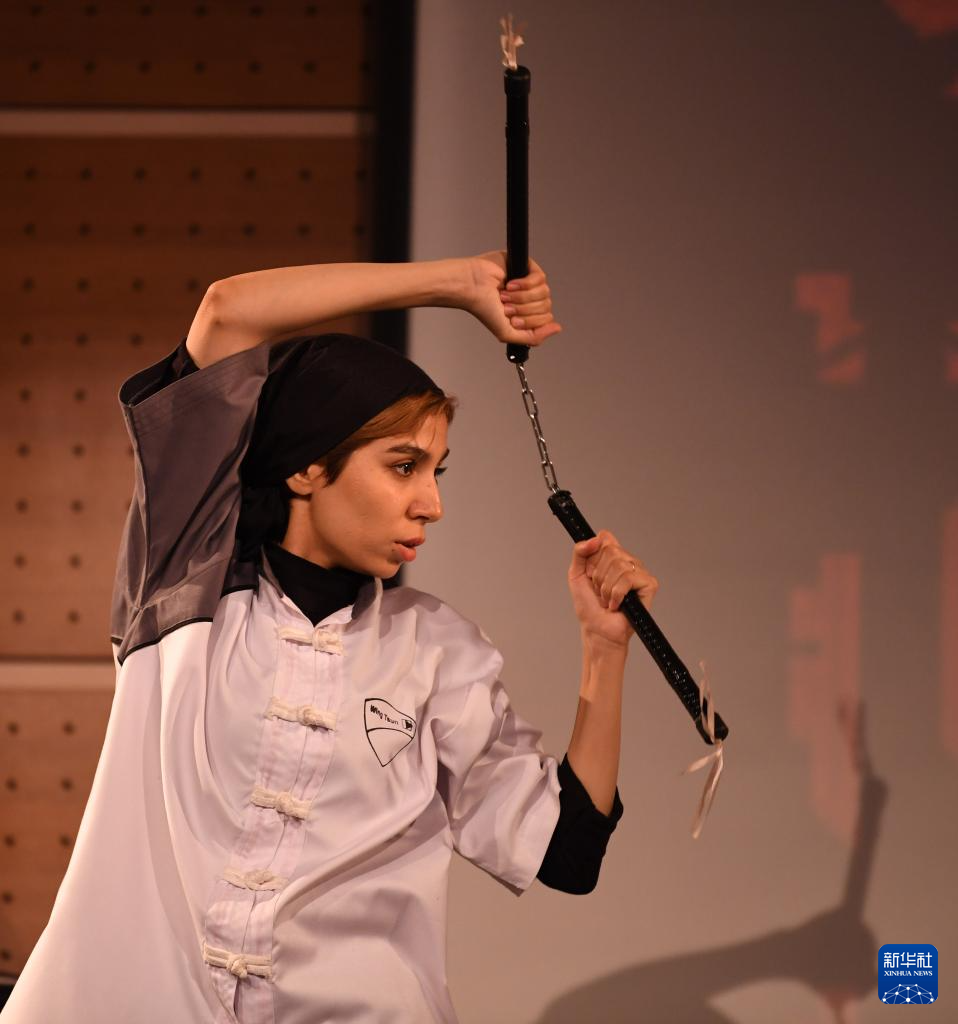 6月10日,在伊朗德黑蘭舉辦的“漢語橋”世界大學生中文比賽伊朗賽區決賽上,獲伊朗賽區決賽第一名的選手白月光(中文名)參加才藝環節比賽。