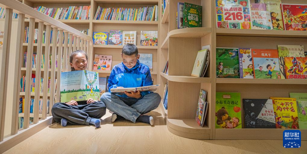 孩子們在“溫暖嘉·色尼城市書房”內閱讀兒童繪本(6月17日攝)。