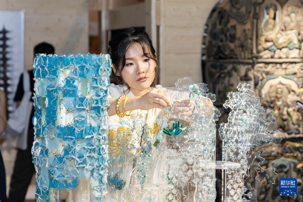 6月19日,觀眾參觀由傣族鏨刻工藝制作的銀編鏨刻系列配飾《云中之城》。