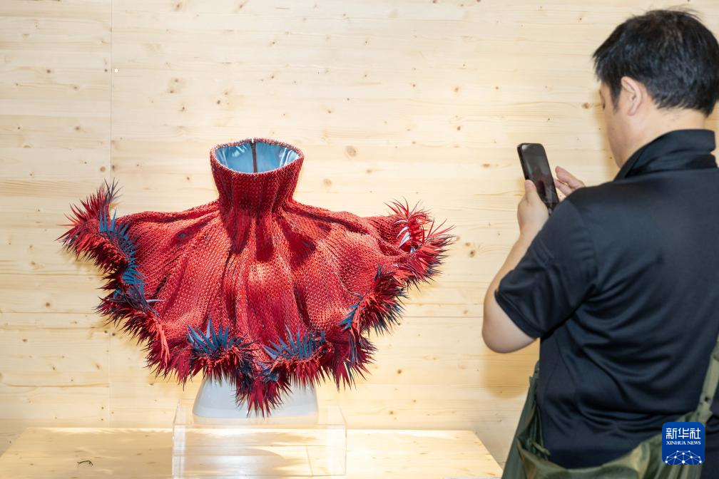 6月19日,觀眾拍攝可穿戴交互裝置《共振》。