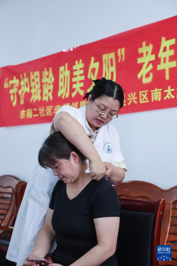 6月20日,在龍泉街道市陌二社區,衛生院醫生在給居民開展中醫冬病夏治“穴位貼敷”。