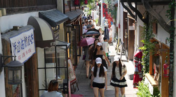 6月18日,人們在楓涇古鎮旅游區游玩。新華社記者 王翔 攝