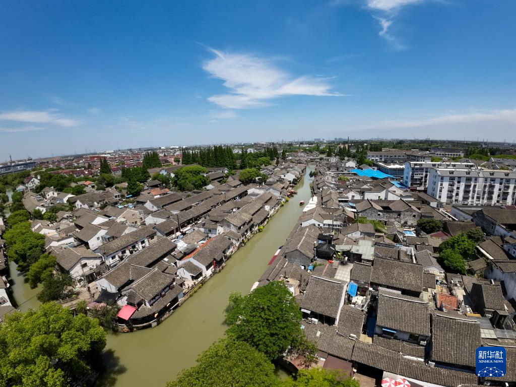 6月18日,空中俯瞰楓涇古鎮(無人機照片)。新華社記者 王翔 攝