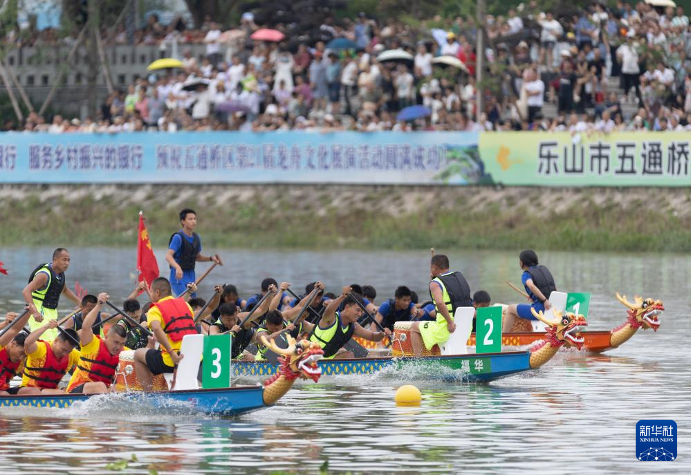 當日,五通橋區第21屆龍舟文化展演活動在四川省樂山市五通橋區小西湖舉行,來自全區24支龍舟隊參與比拼,隨后還進行搶鴨子等民俗活動,吸引眾多群眾和游客觀賞。五通橋龍舟承載著悠久的鹽業文明,孕育了獨特的“川派龍舟”文化。