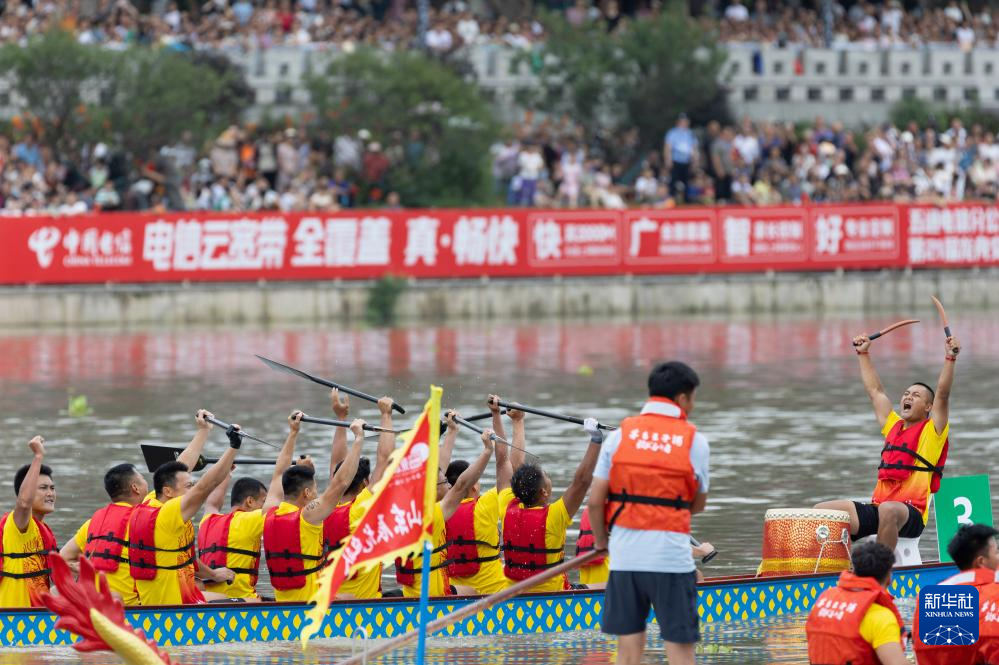 6月23日,一支龍舟隊在獲勝后歡呼。