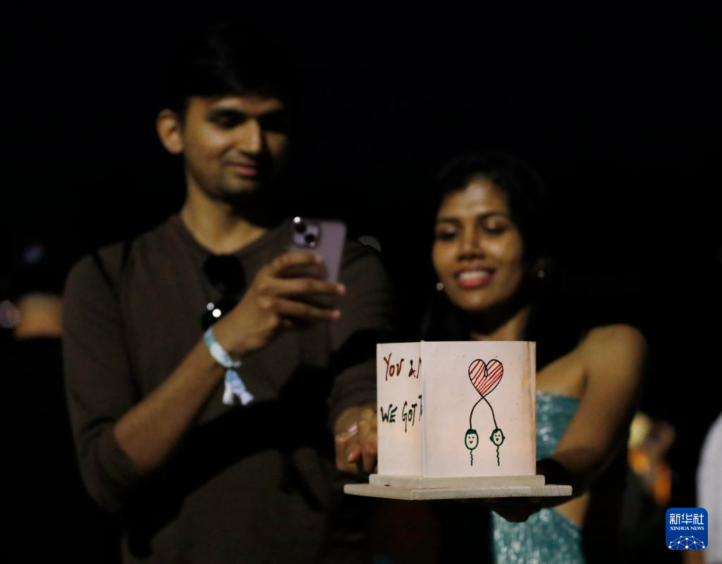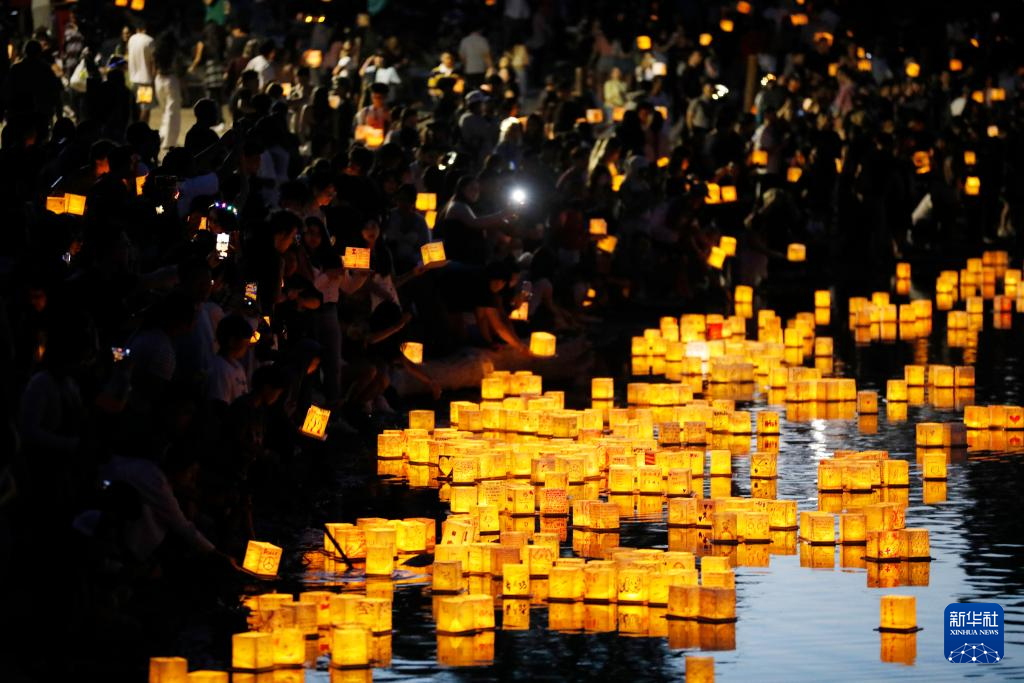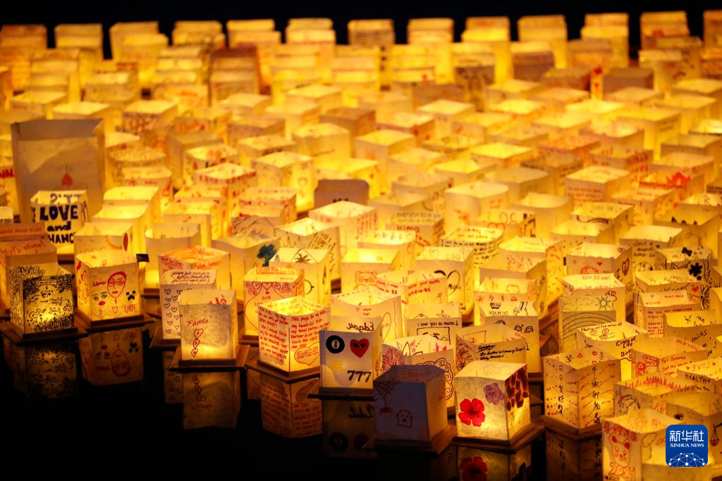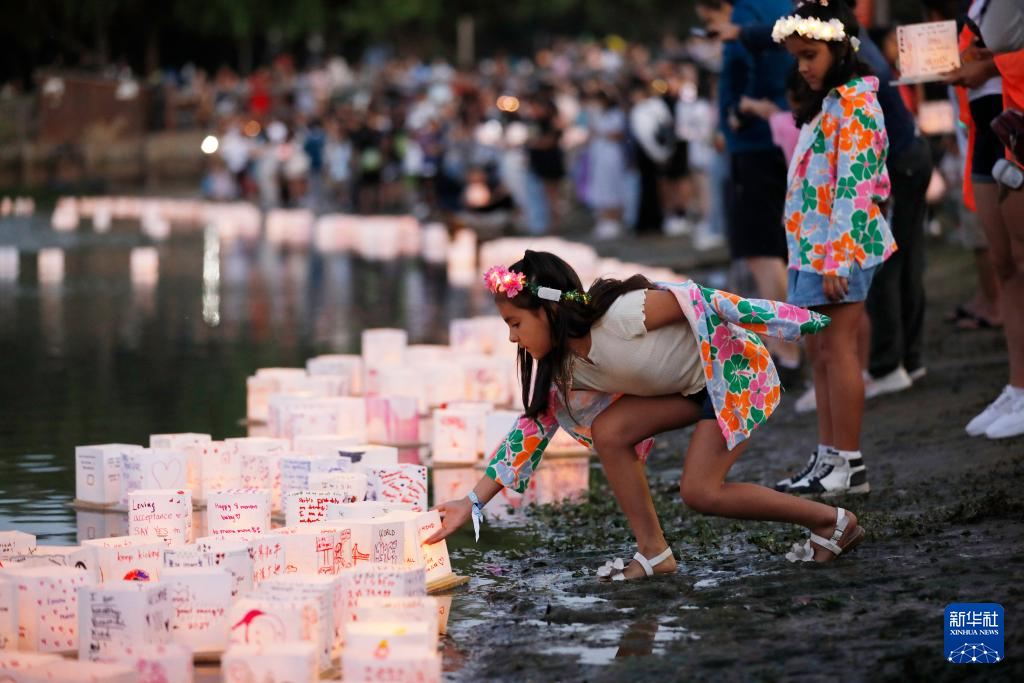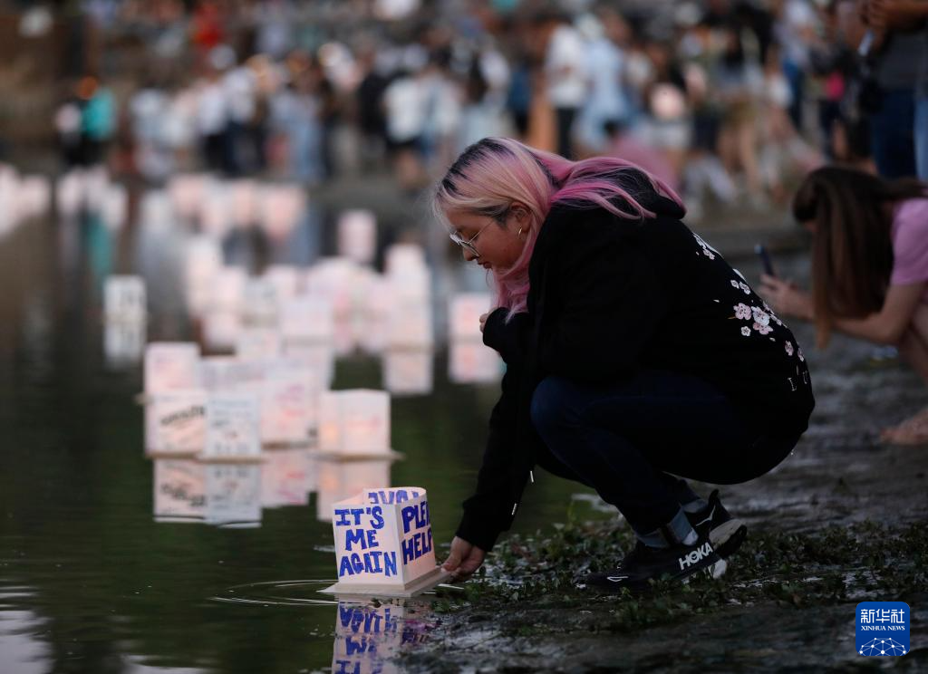 當日,美國加利福尼亞州舊金山灣區圣何塞舉行水燈節,人們通過放水燈表達美好祝愿。