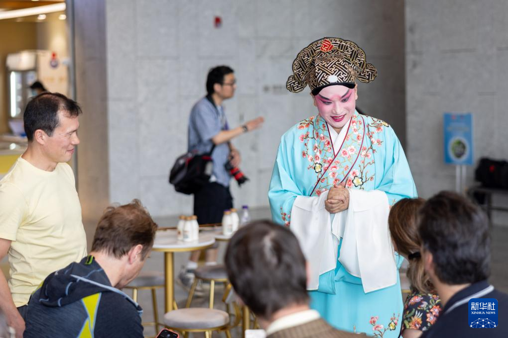 6月25日,上海昆劇團演員譚許亞與柏林愛樂樂團的樂手互動。