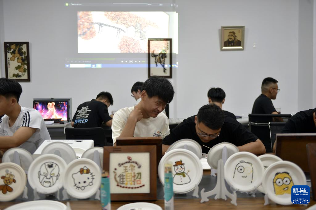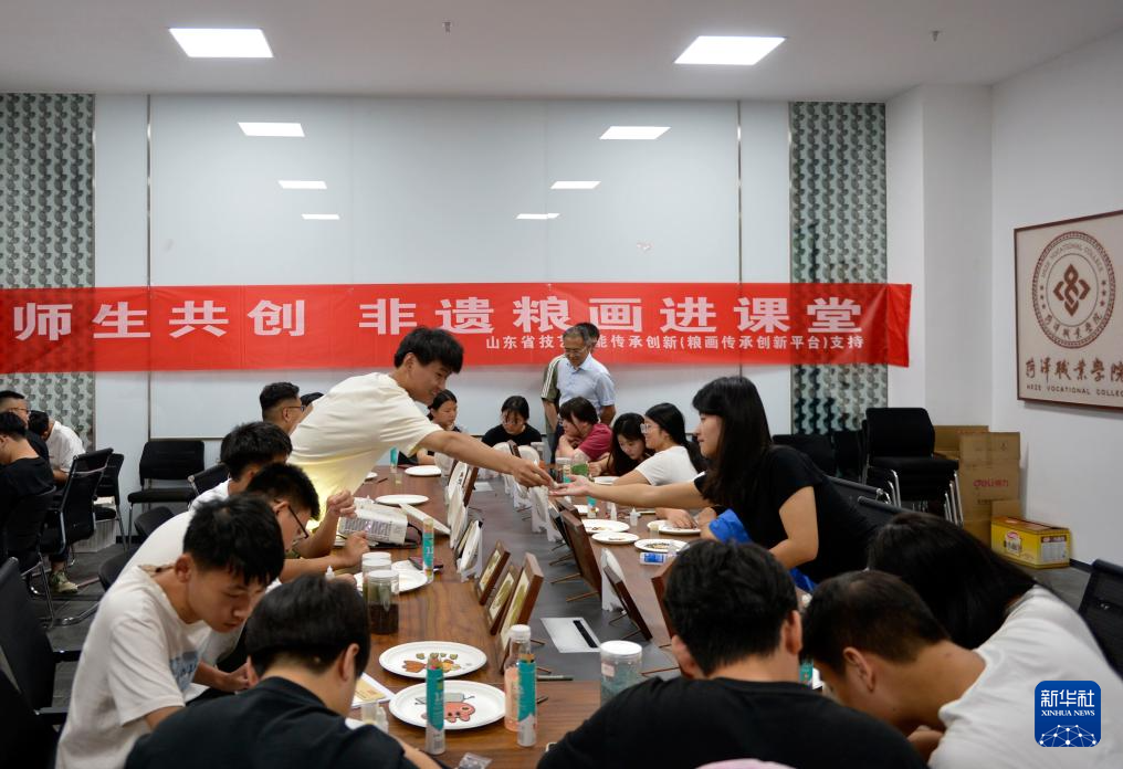 6月27日,學員在菏澤非遺傳承館學習制作糧畫。新華社記者 劉力航 攝
