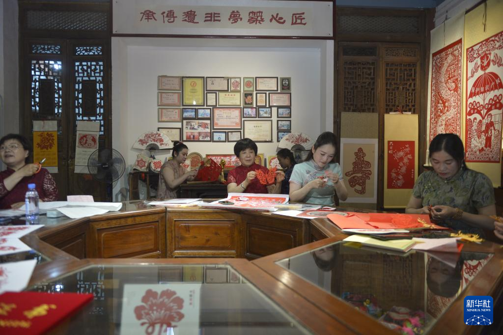 6月27日,工藝師在山東菏澤制作剪紙作品。新華社記者 劉力航 攝