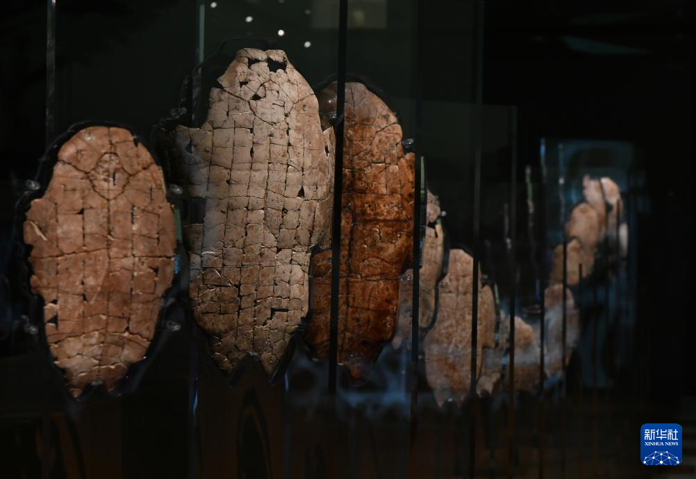 這是在殷墟博物館新館拍攝的考古發掘出土的甲骨文骨片(7月1日攝)。