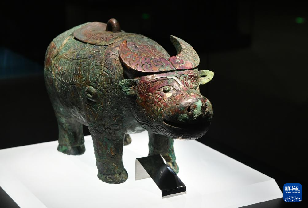 這是在殷墟博物館新館拍攝的文物亞長牛尊,是該博物館的鎮館之寶之一(7月1日攝)。