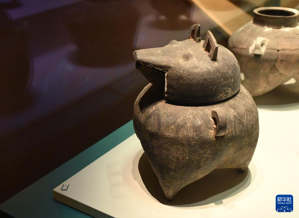 這是在殷墟博物館新館拍攝的豬首陶器(7月1日攝)。