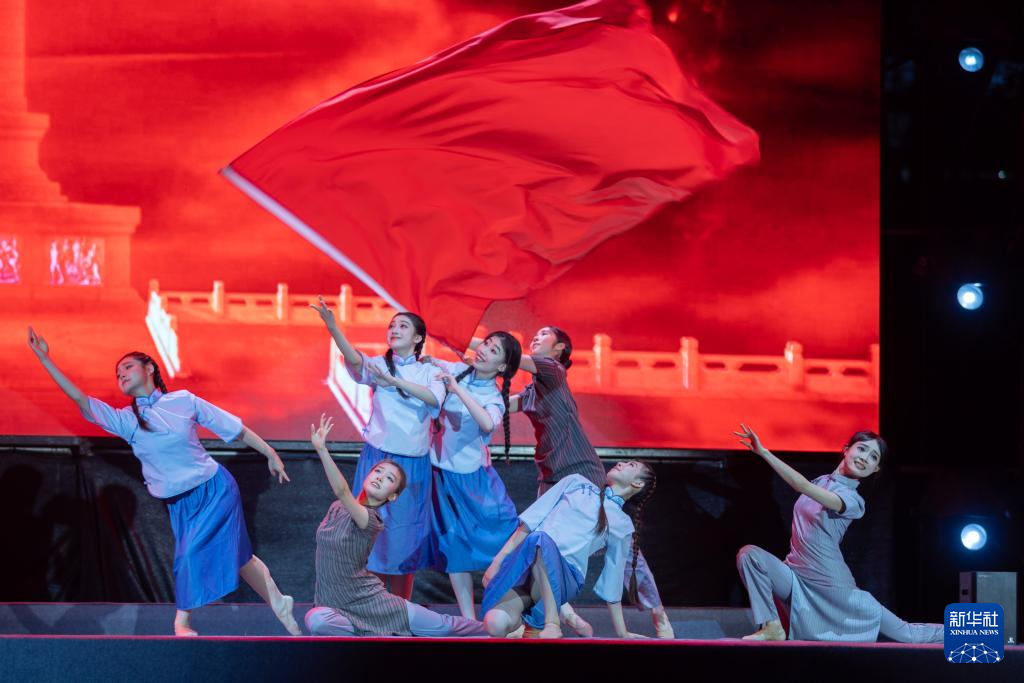7月2日,上海師范大學音樂學院學生表演歌舞詩劇《繡紅旗》。