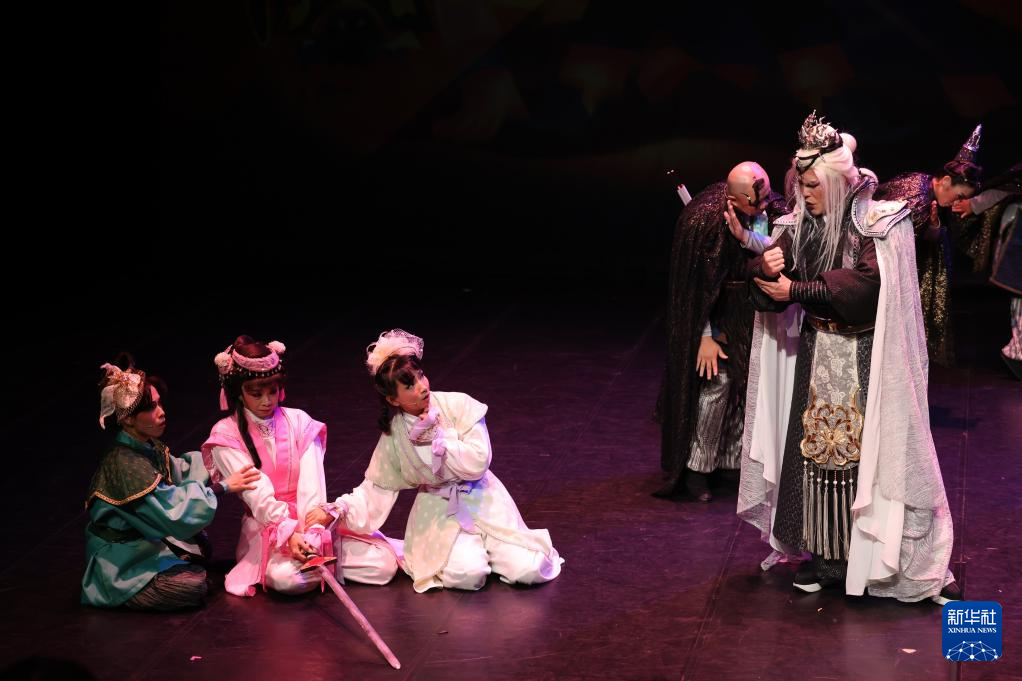 7月10日拍攝的唐美云歌仔戲團的現場表演。新華社發
