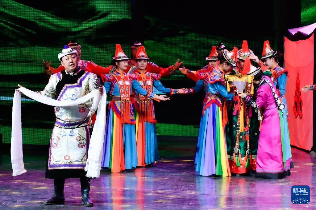 7月12日,張掖市肅南縣非物質文化遺產保護傳承中心演員表演國家級非遺代表性項目裕固族婚俗。