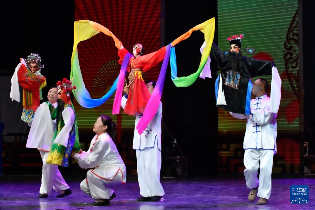 7月12日,演員表演金昌木偶戲《秦聲秦韻》。