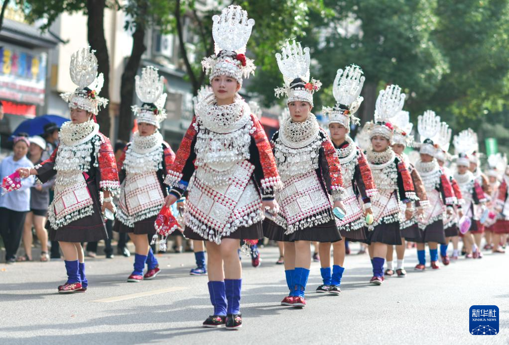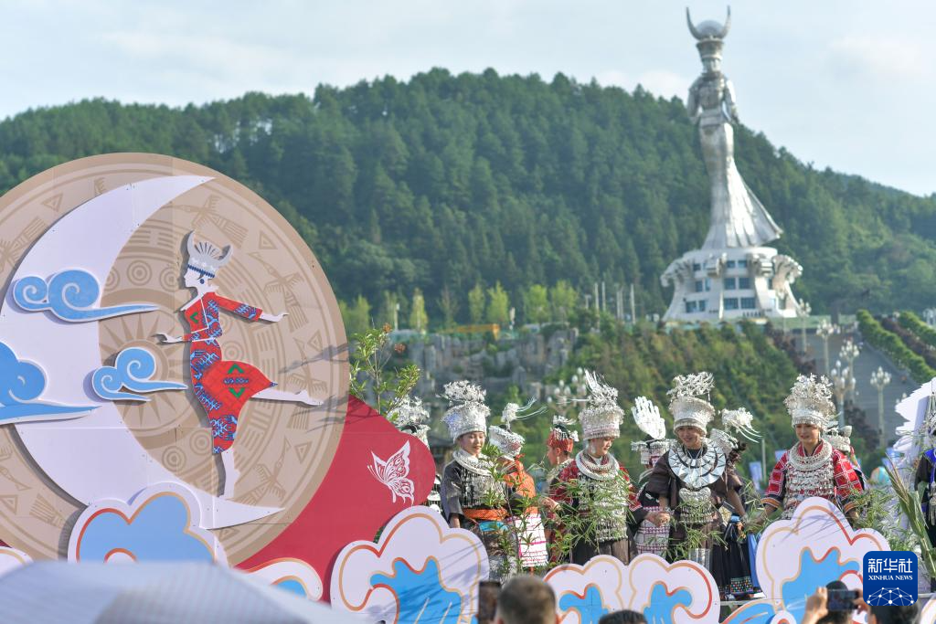 7月13日,少數民族群眾在參加貴州劍河仰阿莎文化節民族文化巡演。