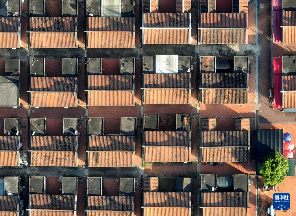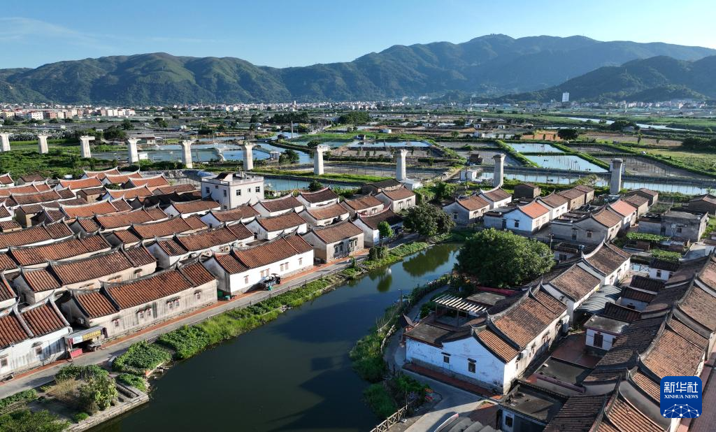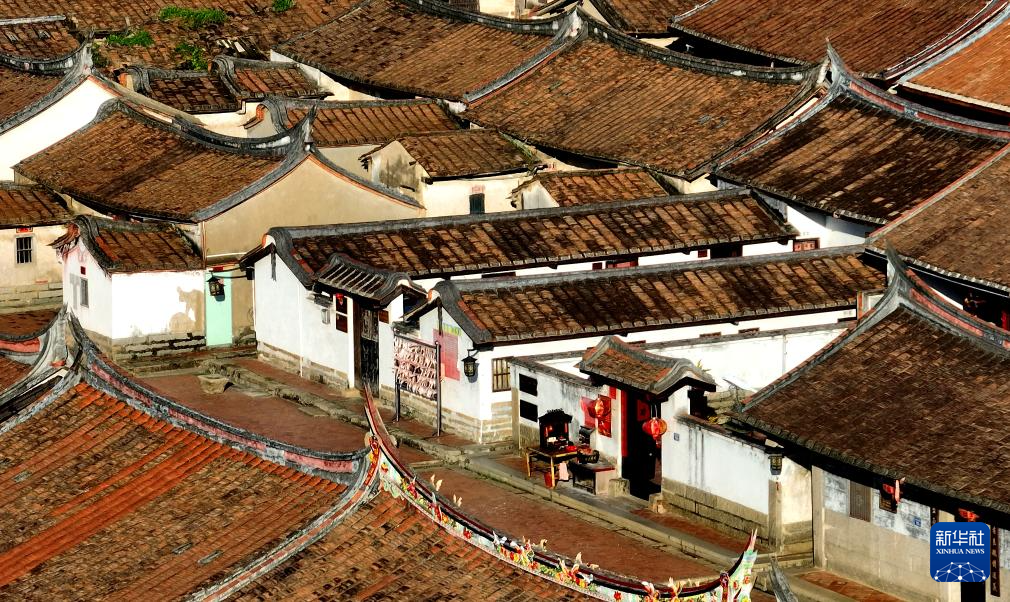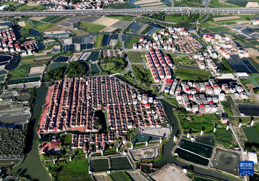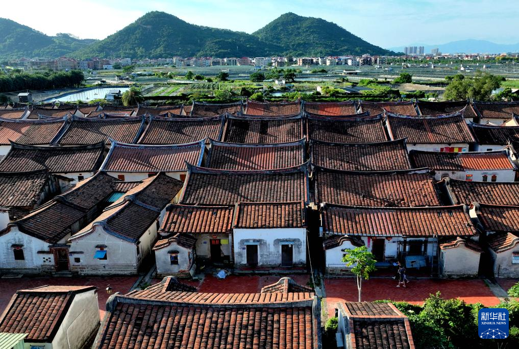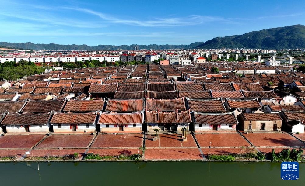 漳州龍海區東園鎮埭美村的古厝,橫豎對齊、整齊劃一(7月10日攝,無人機照片)。
