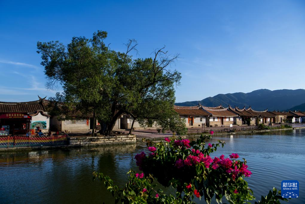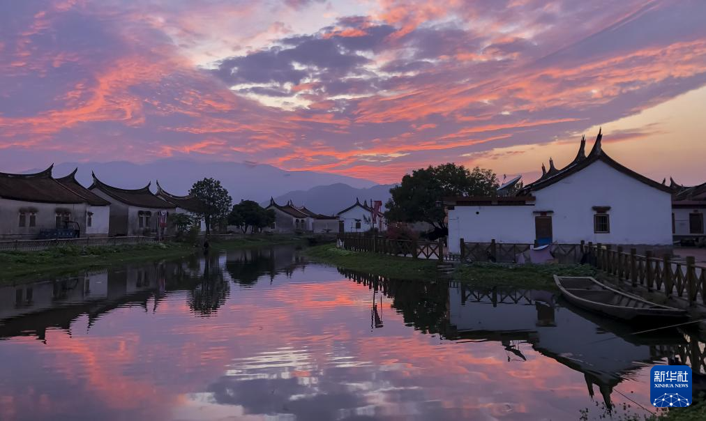這是夕陽下的埭美水上古村景色(資料照片)。