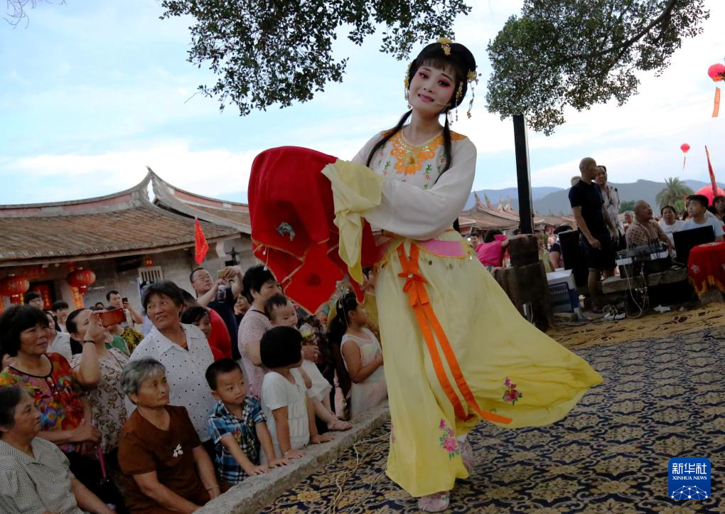 薌劇演員在埭美村廣場為村民們表演薌?。ㄙY料照片)。