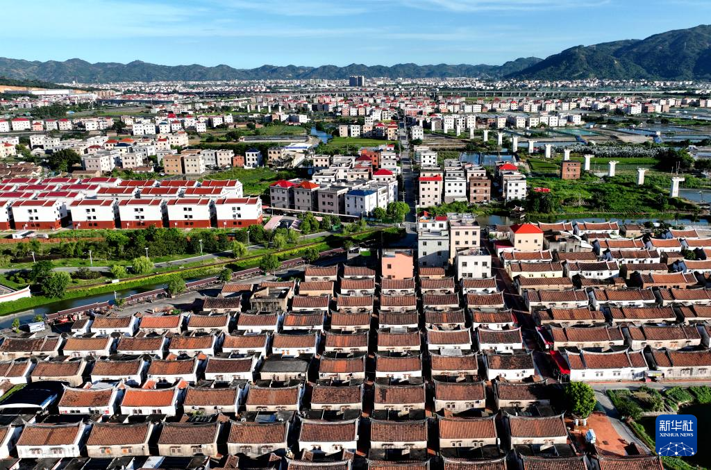 橫豎對齊、整齊劃一的埭美村古厝群(7月10日攝,無人機照片)。