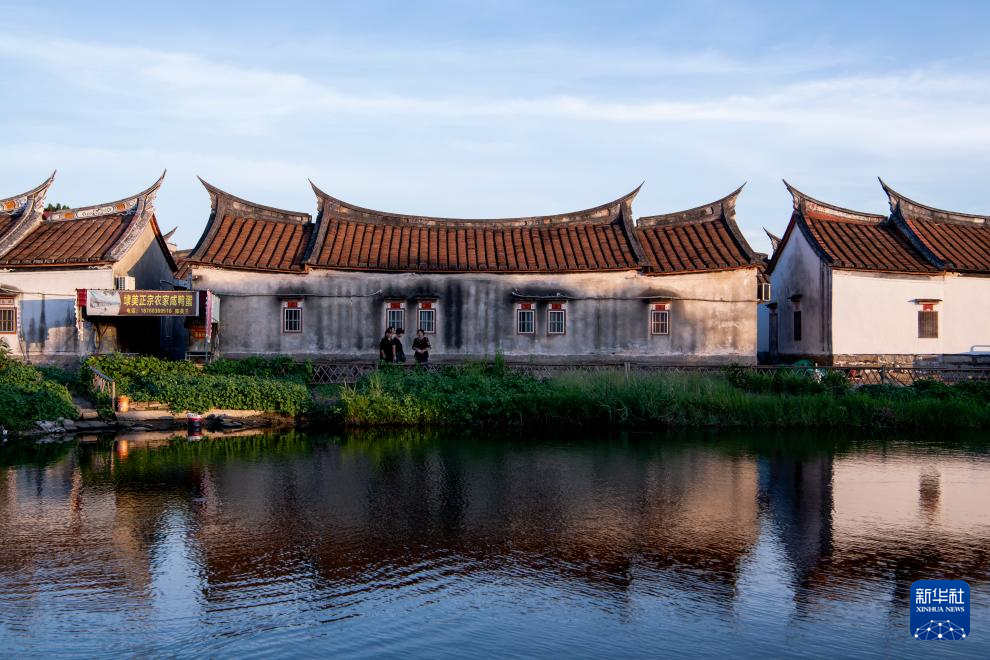 埭美村古厝采用木架結構利于防震,屋檐以閩南特色的紅磚燕尾脊為主(7月10日攝)。