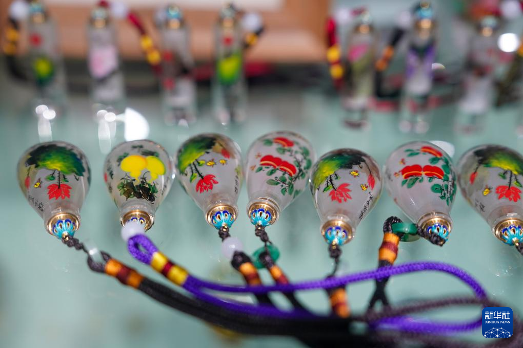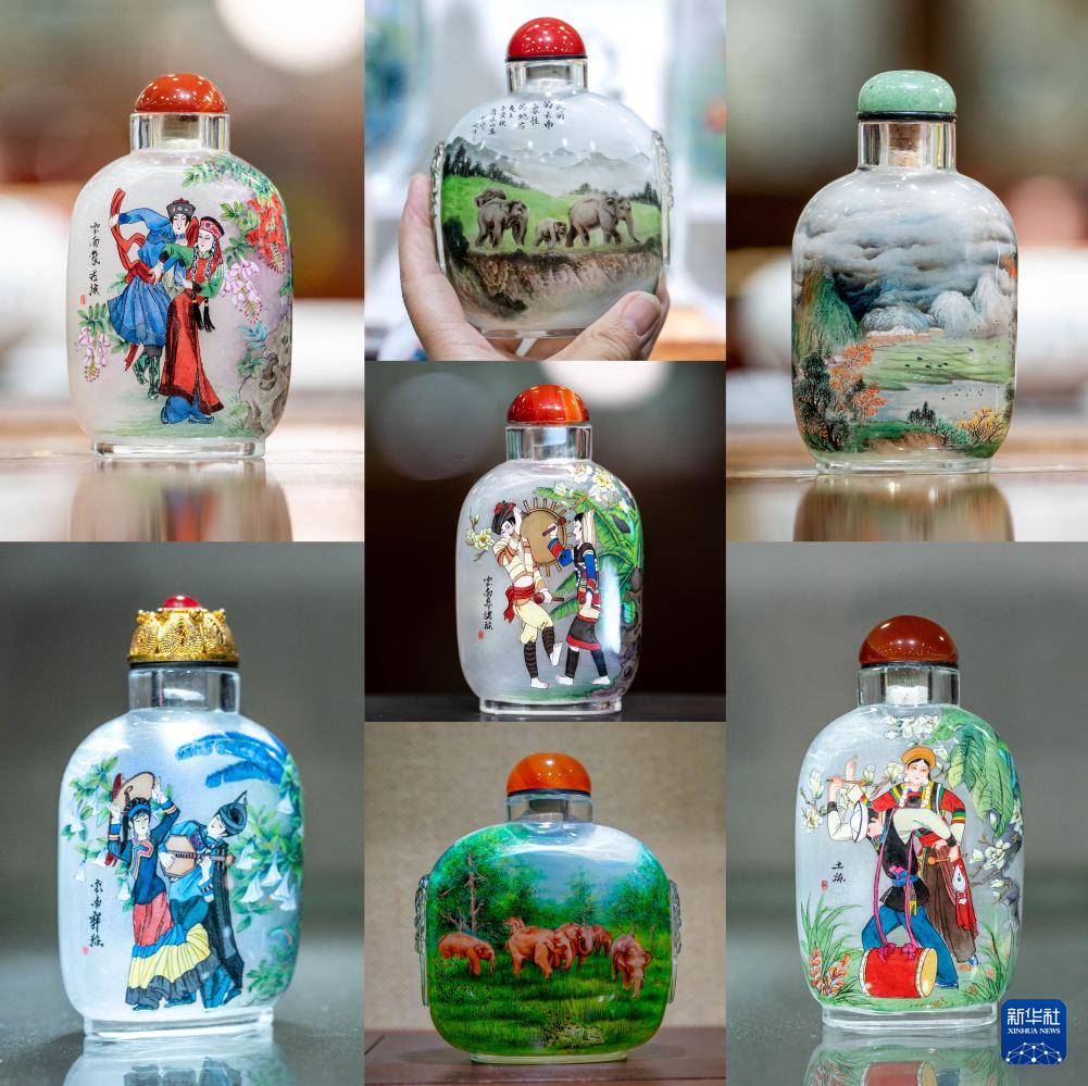 這是孫鴻雁位于昆明官渡古鎮的滇派內畫傳習館內展出的內畫工藝品(7月3日攝)。