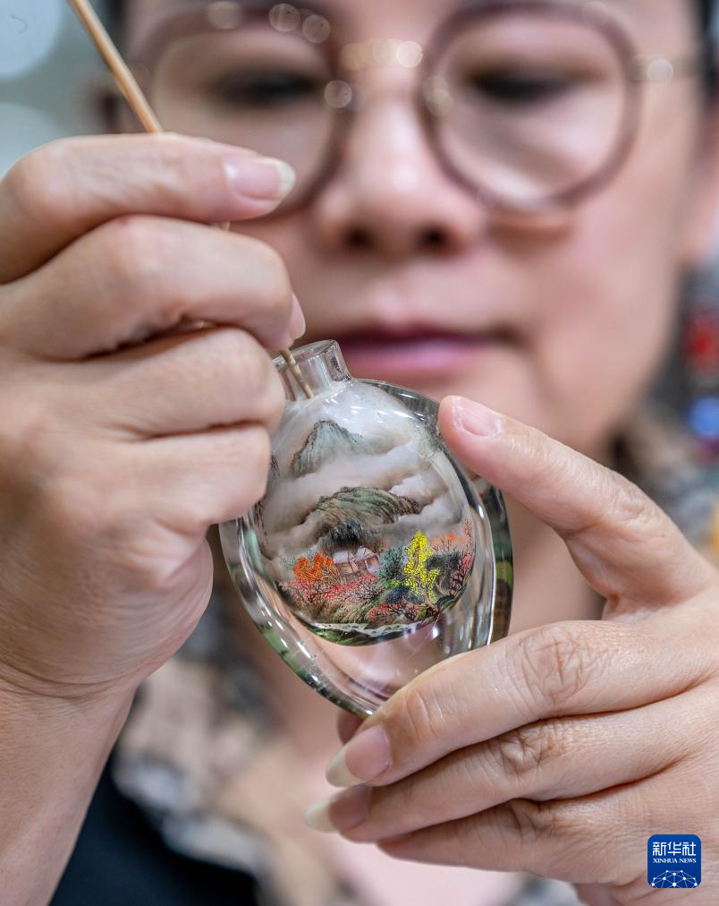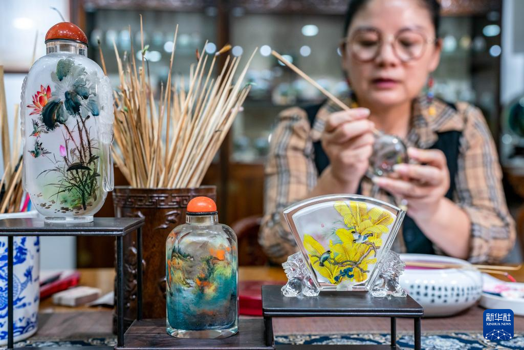 滇派內畫在堅守傳統技藝的同時,通過顏料、工具的創新,以及緊跟時代的設計風格,收獲了許多年輕人青睞?!白鳛槲幕d體的非遺技藝也要與時俱進,接納并滿足不同時代的社會需求,在不斷創新中把古老技藝傳承下去?!睂O鴻雁說。