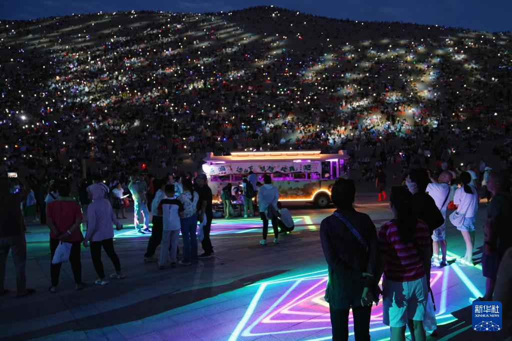 7月15日晚,游客在敦煌鳴沙山月牙泉景區參加萬人星空演唱會。