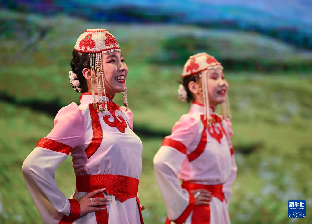 7月22日,蒙古國阿維亞斯-比萊格少兒藝術團在藝術節上展演。