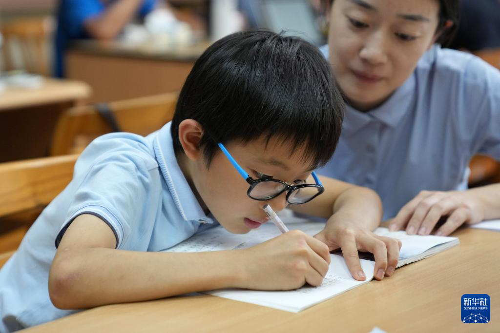 7月29日,在位于杭州的浙江圖書館曙光路館,一名小朋友在大人陪伴下做作業。