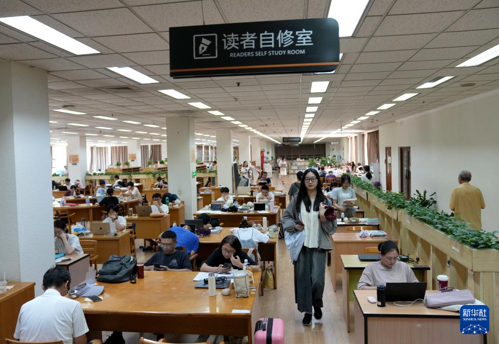 近期持續高溫,不少杭州市民前往圖書館看書學習,在炎炎夏日中享受清涼。