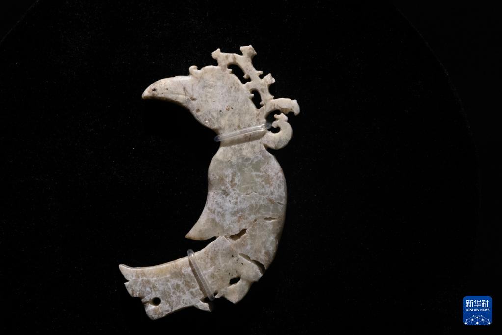 這是7月28日在重慶中國三峽博物館舉行的“玉出大江——長江流域史前玉器特展”上拍攝的肖家屋脊文化玉鳳。