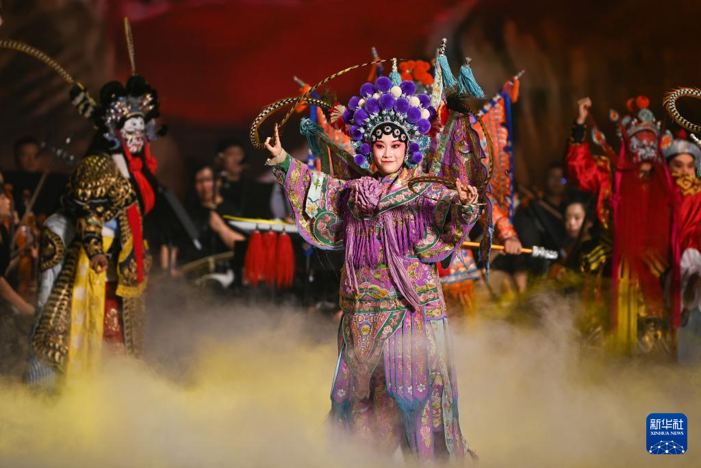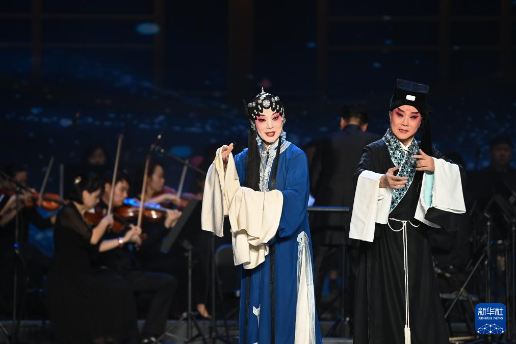 7月30日,演員在《陜西地方戲曲音樂聯奏》中表演曲牌與搖滾。