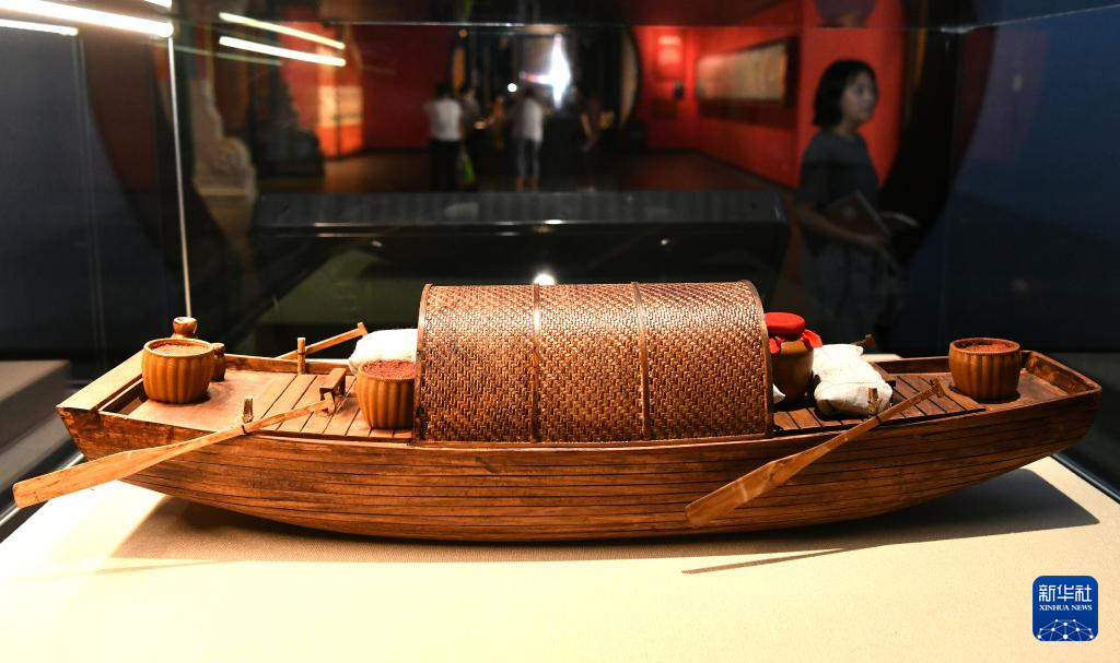 8月2日,游客在中國大運河非物質文化遺產展示館內參觀。