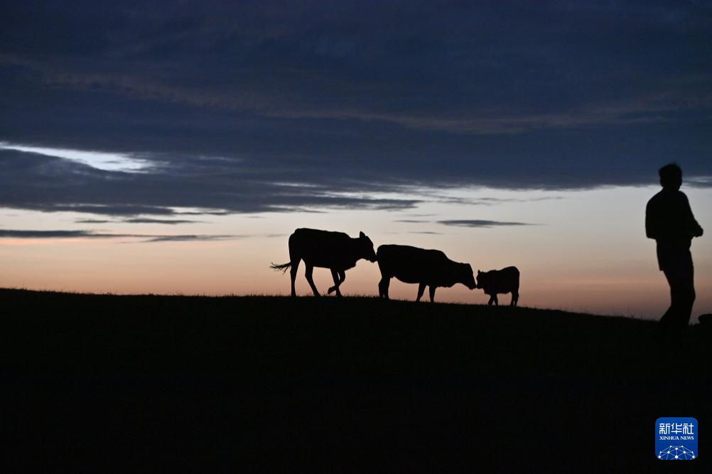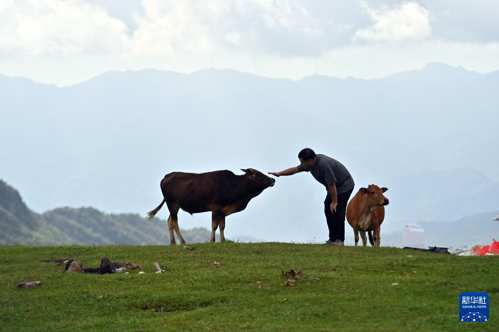 在融水苗族自治縣桿洞鄉堯告村高山牧場,幾頭黃牛在吃草(8月14日攝)。